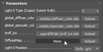 - Minimize o editor ShaderFX. Na implementação Parâmetros do Interactive, use o novo controle para escolher o mapa.