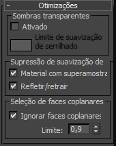 A implementação de Otimizações fornece controles adicionais para Sombras com tracejamento de raio avançado e geração de Sombra da área.