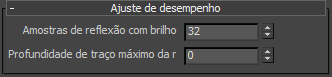 Nota: Quando Amostras de brilho de reflexão for igual a 0, as reflexões terão a forma de um "espelho perfeito" e somente um raio será disparado, independentemente do valor real de Brilho. Você pode usar isso para melhorar o desempenho para superfícies com reflexões muito fracas.