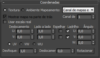 Para que o mapeamento do mundo real funcione, devem ser atendidos dois requisitos. Primeiro, o estilo correto das coordenadas de textura UV deve ser atribuído à geometria. Essencialmente, o tamanho do espaço UV precisa corresponder ao tamanho da geometria. Uma opção denominada Tamanho do mapa do mundo real aparece na maioria das caixas de diálogos e implementações e permite que você gere coordenadas de textura (consulte a lista no final deste tópico). Qualquer caixa de diálogo ou implementação que permita a você ativar Gerar coordenadas de mapeamento também permite que você ative o Tamanho do mapa do mundo real. Também é possível alternar essa opção globalmente no