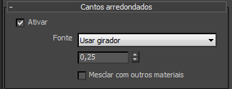 Os controles para Cantos arredondados suavizam as arestas de objetos sem precisar alterar a geometria.