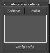 Permite definir o efeito de atmosfera ou de renderização selecionado na lista. Se o item for uma atmosfera, clicar em Configuração exibe o painel Ambiente. Se o elemento for um efeito, clicar em Configuração exibe o painel Efeitos.