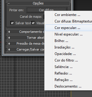 Selecione um tipo de mapa no material do objeto no qual pintar. Clique no botão para abrir uma lista de tipos de mapas disponíveis:
