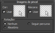 Utilize as configurações de Imagens de pincel para pintar com imagens e máscaras de bitmap, em vez de cores sólidas. É possível atribuir imagens predefinidas e personalizadas para cor e máscara do pincel. Por exemplo, a utilização de uma máscara permite criar o quadrado de contorno do pincel, em vez do círculo padrão. Você também pode causar a rotação do pincel para seguir a direção de movimento ou utilizar uma rotação aleatória.