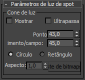 Estes parâmetros controlam os Ângulos de iluminação/enfraquecimento das luzes de spot.