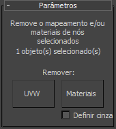 O utilitário Remover UVW remove as coordenadas de mapeamento ou materiais a partir dos objetos selecionados atualmente.