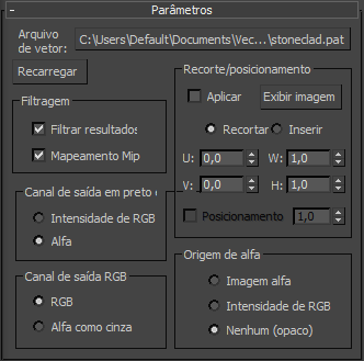 Fornece controles básicos para especificar o arquivo de gráficos de vetores, como ele é inserido e algumas opções de saída.