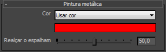 O Material de pintura metálica sempre tem uma demão superior clara. As configurações nesta implementação permitem ajustar o brilho da demão superior e a textura.
