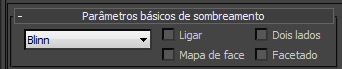 A Implementação de parâmetros básicos do sombreador permitem escolher o tipo de sombreador para uso com material Padrão. Alguns controles adicionais afetam como o material é exibido.