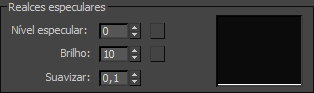 Afeta a intensidade do realce especular. Conforme você aumenta o valor, o realce fica com mais brilho. Padrão=0 para um material padrão, 50 para um material de tracejamento de raios.