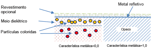 - uma camada base que é uma cor difusa com uma reflexão dielétrica impulsionada por Fresnel ou reflexões metálicas coloridas