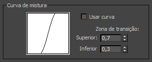 Na implementação Parâmetros de combinação, a Quantidade de combinação estará inativa enquanto um mapa estiver atribuído a esse parâmetro. Se Usar curva estiver desativado, o mapa de combinação será usado da maneira em que se encontra. Se Usar curva estiver ativado, será possível alterar o efeito da rampa de gradiente do mapa de combinação, deslocando para um lado ou para o outro e revelando mais ou menos dos componentes da combinação.