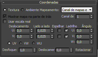 Ajusta os parâmetros de coordenadas para mover um mapa em relação à superfície do objeto ao qual está aplicado, bem como outros efeitos.