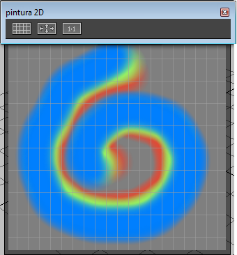 A Vista 2D permite pintar um mapa em uma janela plana e retangular de Pintura 2D sobreposta nas viewports.