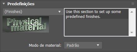 Também é possível utilizar uma predefinição (modelo) como um ponto de partida para gerar um material personalizado. Selecione um modelo na lista suspensa e uma descrição com instruções gerais será exibida no painel direito.