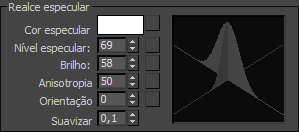 Afeta a intensidade do realce especular. Conforme você aumenta o valor, o realce fica com mais brilho. Padrão=0 para um material padrão, 50 para um material de tracejamento de raios.