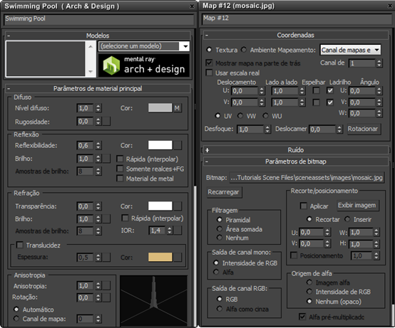 Direita: Controles para um nó de bitmap no Editor de parâmetros