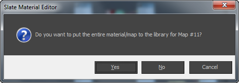 Se você selecionar um nó subordinado (por exemplo, um mapa ou submaterial) sem selecionar seu pai, o 3ds Max perguntará se deseja incluir o pai na biblioteca: