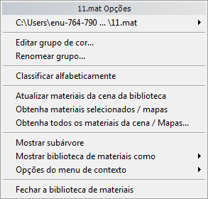 Para adicionar uma mapa ou um material em uma biblioteca, arraste-o para a biblioteca a partir de qualquer lugar no Navegador de materiais/mapas (não de uma vista nomeada). Para remover um item de uma biblioteca, clique com o botão direito do mouse em sua entrada e escolha Remover da biblioteca. Para remover uma biblioteca do Navegador de materiais/mapas, clique com o botão direito do mouse em seu cabeçalho e selecione Fechar a biblioteca de materiais. Mas primeiro, se você deseja reutilizar a biblioteca mais tarde, salve-a (consulte a seguir). Caso contrário, a biblioteca será excluída de forma permanente.