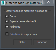 Ao selecionar essa opção, o 3ds Max abre a caixa de diálogo Obter todos os materiais/mapas da cena.