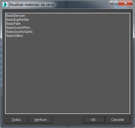 Se nenhum material na cena compartilhar um nome com a biblioteca de materiais, o 3ds Max exibirá um aviso sobre isso.
