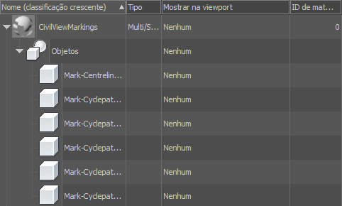 É possível editar células nesta coluna: clique na cela para exibir uma lista suspensa que permite alternar o estado Mostrar mapa da viewport.