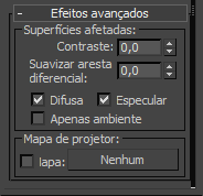 - Ajusta o contraste entre a área difusa e a área ambiente da superfície. Deixe esta opção definida como 0 para contraste normal. Aumente o valor para aumentar o contraste e dos efeitos especiais: por exemplo, a luz forte do espaço externo. Padrão=0,0.