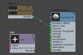 Adicionar nó. Clique na segunda entrada de Valor e altere a sequência padrão para 0 0.5 0 0.