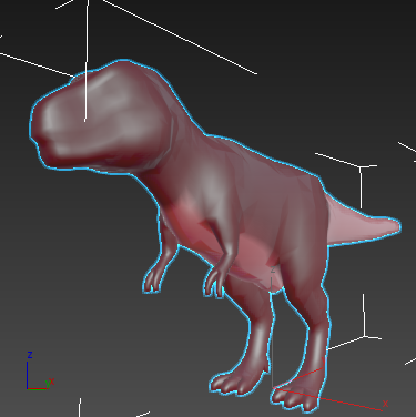Em viewports Sombreadas e Realísticas, o dinosauro fica escuro.