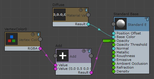 Este exemplo demonstra como utilizar o canal verde da cor de vértice para controlar a opacidade.