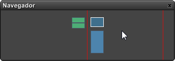 O retângulo vermelho no Navegador exibe o limite da vista ativa. Arrastar o retângulo no Navegador altera o foco da vista.