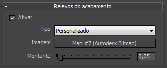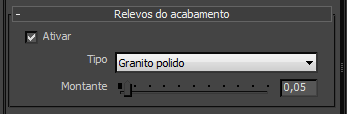 Controla a altura do relevo no acabamento. Faixa: de 0,0 a 1,0. Padrão = 0,05.