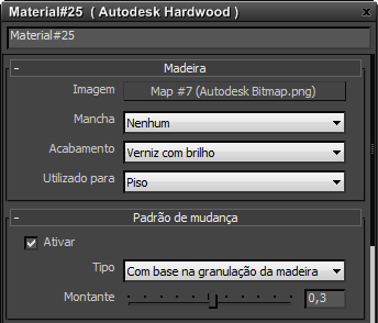 Parâmetros de material no editor de parâmetros