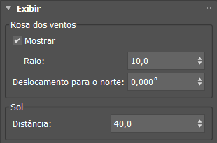 - A distância entre o sol e a rosa dos ventos, conforme exibido nas viewports.