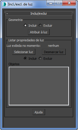 - Especifica se o objeto selecionado deve receber luz de um determinado objeto de luz. Padrão=incluir.