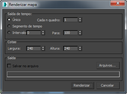 O 3ds Max abre a caixa de diálogo Renderizar Mapa no menu de atalho da ranhura de amostra para renderizar o mapa exibido em uma ranhura de amostra.