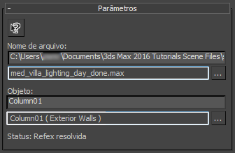 Exibe o caminho e o nome do arquivo de cena que contém a origem do material de refex. É possível editar isso para apontar para um caminho e arquivo diferentes.