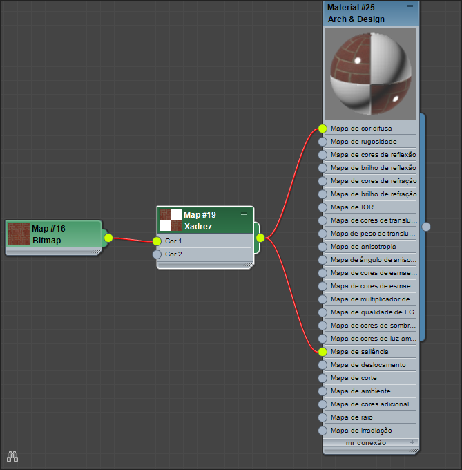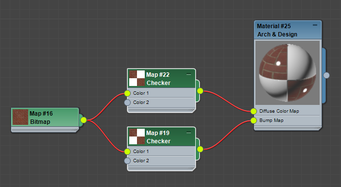 Depois de clicar com o botão direito do mouse em um fio entre o bitmap e o material e escolher tornar a ramificação exclusiva