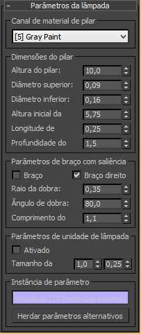 - Quando ativado, é exibido o braço correspondente da coluna da lâmpada.