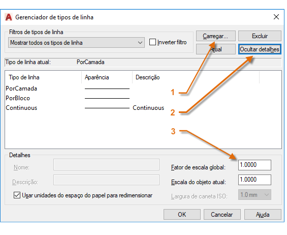 Isso exibe a caixa de diálogo Gerenciador de tipo de linha.