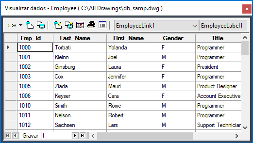 Indica os objetos gráficos no desenho atual do AutoCAD que estão vinculados ao registro do banco de dados selecionado.