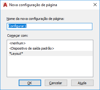 Especifica uma configuração de página para usar inicialmente para Nova configuração de página. Quando você clicar em OK, a caixa de diálogo Configuração da página é exibida com os ajustes da configuração de página selecionada, que pode ser alterada conforme necessário.