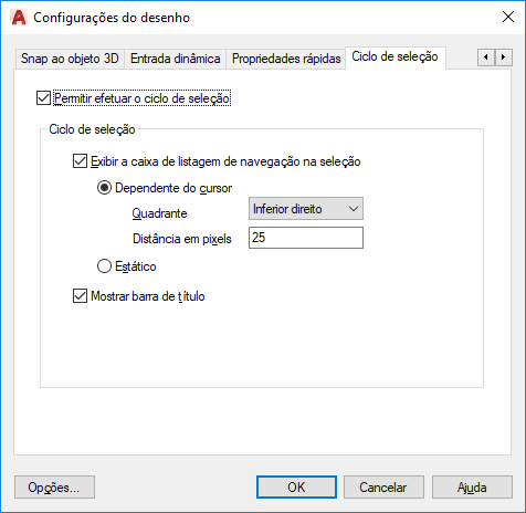 Determina se o recurso de ciclo de seleção está ativado. (Variável de sistema SELECTIONCYCLING).