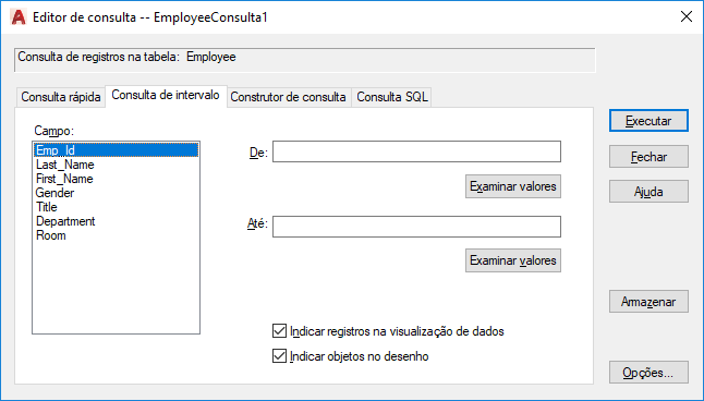Abre a caixa de diálogo Visualização de dados e opções de consulta.