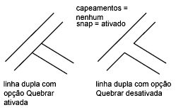 É possível especificar se há uma lacuna em uma linha dupla, linha ou arco quando acontece um snap de uma linha dupla a um desses itens.