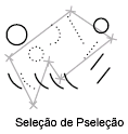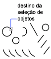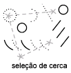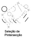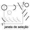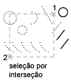 Seleciona objetos contidos e que fazem interseção com uma área definida por dois pontos. Uma seleção por intersecção é exibida realçada ou com um tracejado para diferenciar-se da janela de seleção.