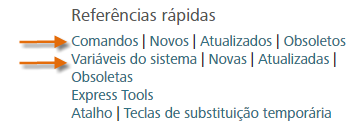 Pressione F1 para iniciar a ajuda. Na página inicial de Ajuda, clique em Comandos ou Variáveis de sistema.