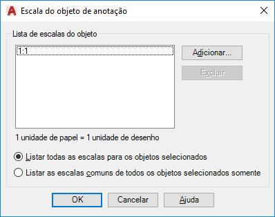 Adiciona ou exclui as escalas compatíveis com o objeto anotativo selecionado.