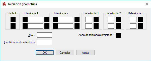 Depois que você selecionar os símbolos de características geométricas, a caixa de diálogo Geometric Tolerance é fechada e o seguinte prompt é exibido: