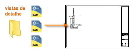 No exemplo a seguir, um arquivo de desenho é inserido no desenho atual para fornecer uma vista de detalhe padrão.